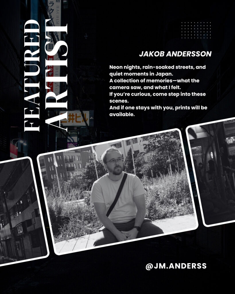 Emerging artist and photographer, Jakob Andersson, brings his first show of late night photos shot in Osaka, Japan.